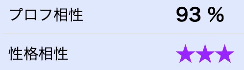検索画面の一覧から、ひとめで性格相性もみれるので、選ぶときのいい基準になっています。