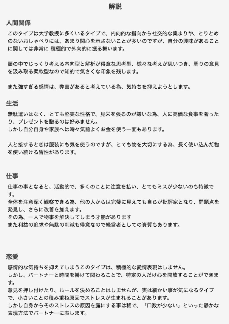 16パターンの性格分類ですが、細かい内容も個別に書いてあって、私の場合は「ほぼ完全に」当てられてしまいました^^;